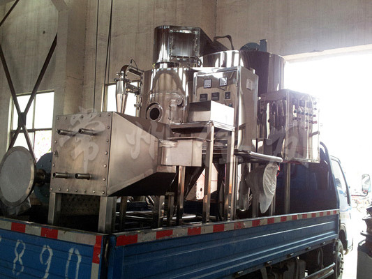 该机彩全封闭形式,所有部件均彩不锈钢制造,配有三极净化装置,过滤后的空气达十万级要求。简体与顶部装有冷壁装置,使壁温<80摄氏度,干燥塔内装有气刷扫塔装置,经该机干燥后的中药浸膏粉,不会出现焦化变质现象,大大啬了收粉率(达95%以上),而且不会产生混药现象和粘壁现象。